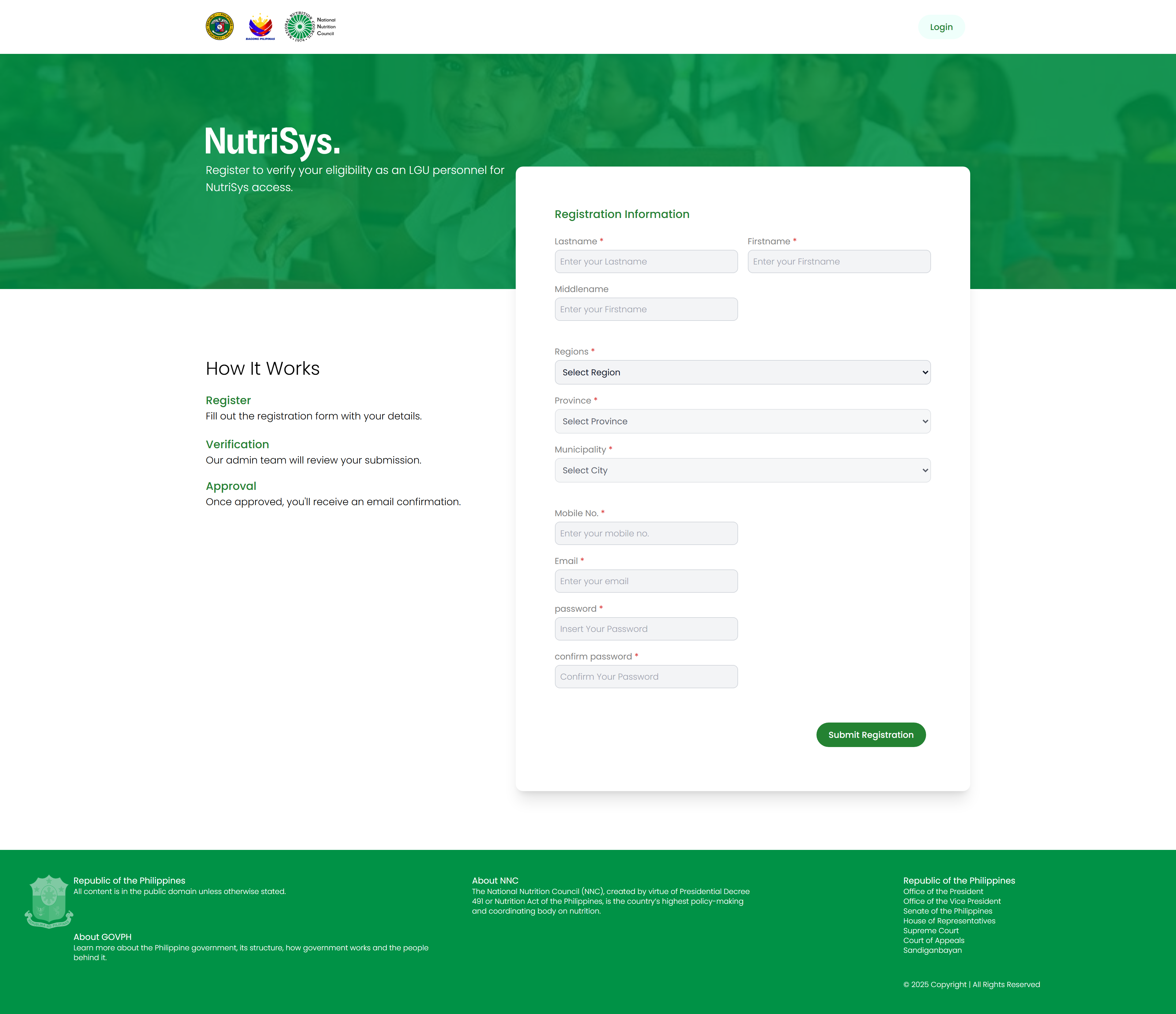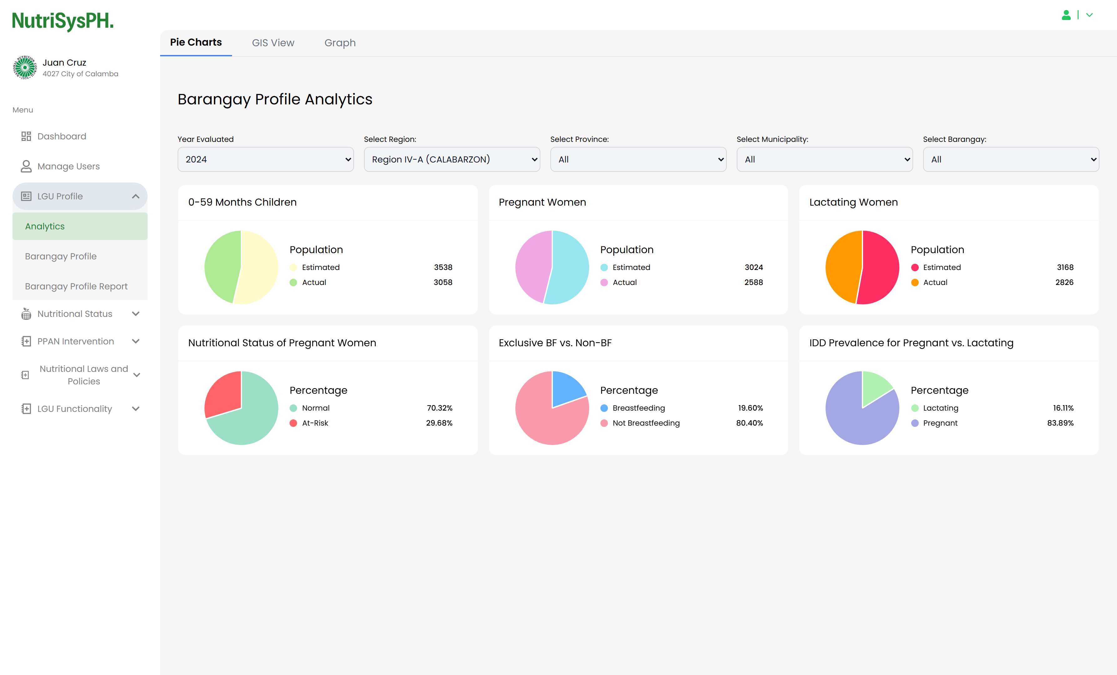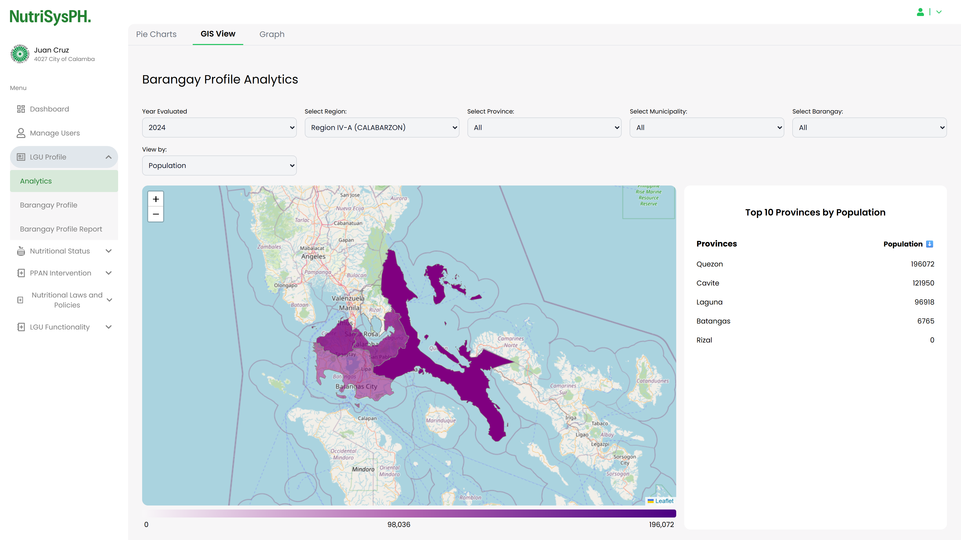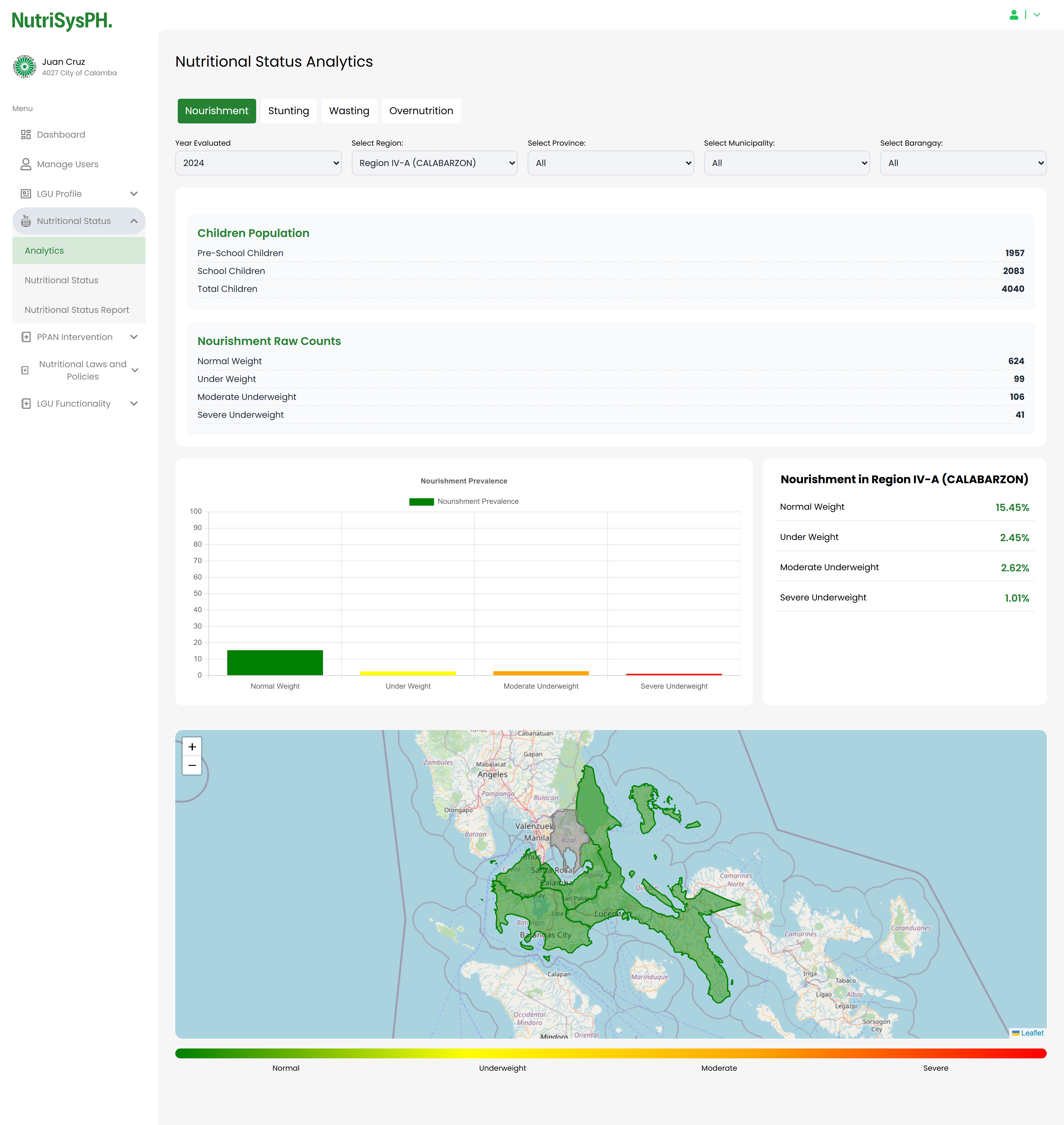 NutrisysPH is a web-based system designed to monitor and visualize the nutritional status of barangays across the CALABARZON region in the Philippines. I was responsible for the overall website design, ensuring a clean and user-friendly interface, and I also contributed to its development using the Laravel + Inertia.js (React) stack. One of the key features I implemented is the GIS integration using Leaflet.js and regional GeoJSON data, which allows users to interact with a dynamic map displaying various health and population indicators at the barangay level.